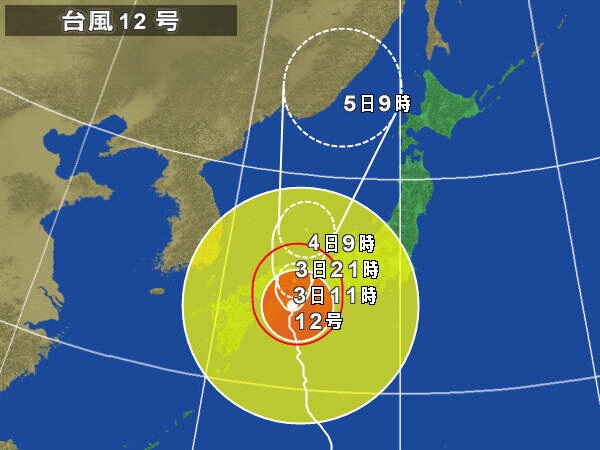 大型の台風12号 は3日午前10時前 、高知県東部に上陸した。