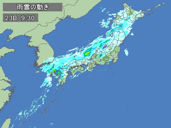 午前9時半現在、北海道から九州にかけての広い範囲で雨が降っていて、 午前9時までの1時間には▽長崎県平戸市で37.5ミリの激しい雨を観測したほか、▽岐阜県高山市朝日で23.5ミリの雨が降りました。