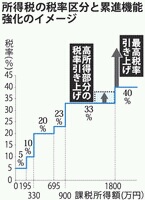 このため政府・民主党は、最高税率を引き上げたり、課税段階を増やして高所得部分の税率を高めることなどを検討する。