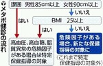 しかし、腹囲が基準値未満だと、体格指数(BMI)が25未満なら、危険因子があっても指導の対象外だった。